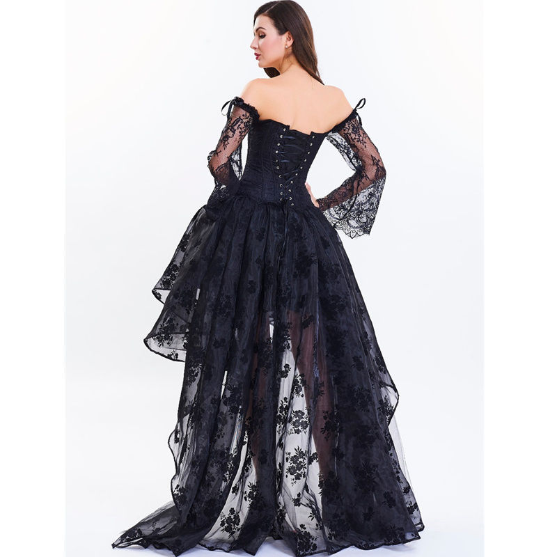 Black Corset Dress Lolita Sexy Overbust Push Up Corset Lace Fishbone Corset Unif