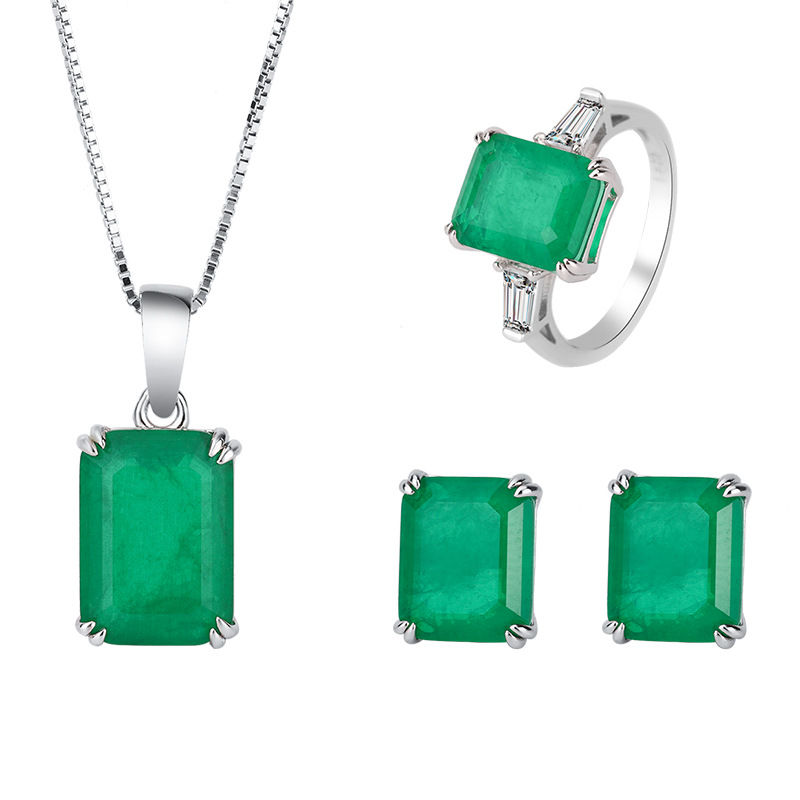 925 Sterling Silver Ring Set with Emerald Zircon Crystals for Women Engagement W