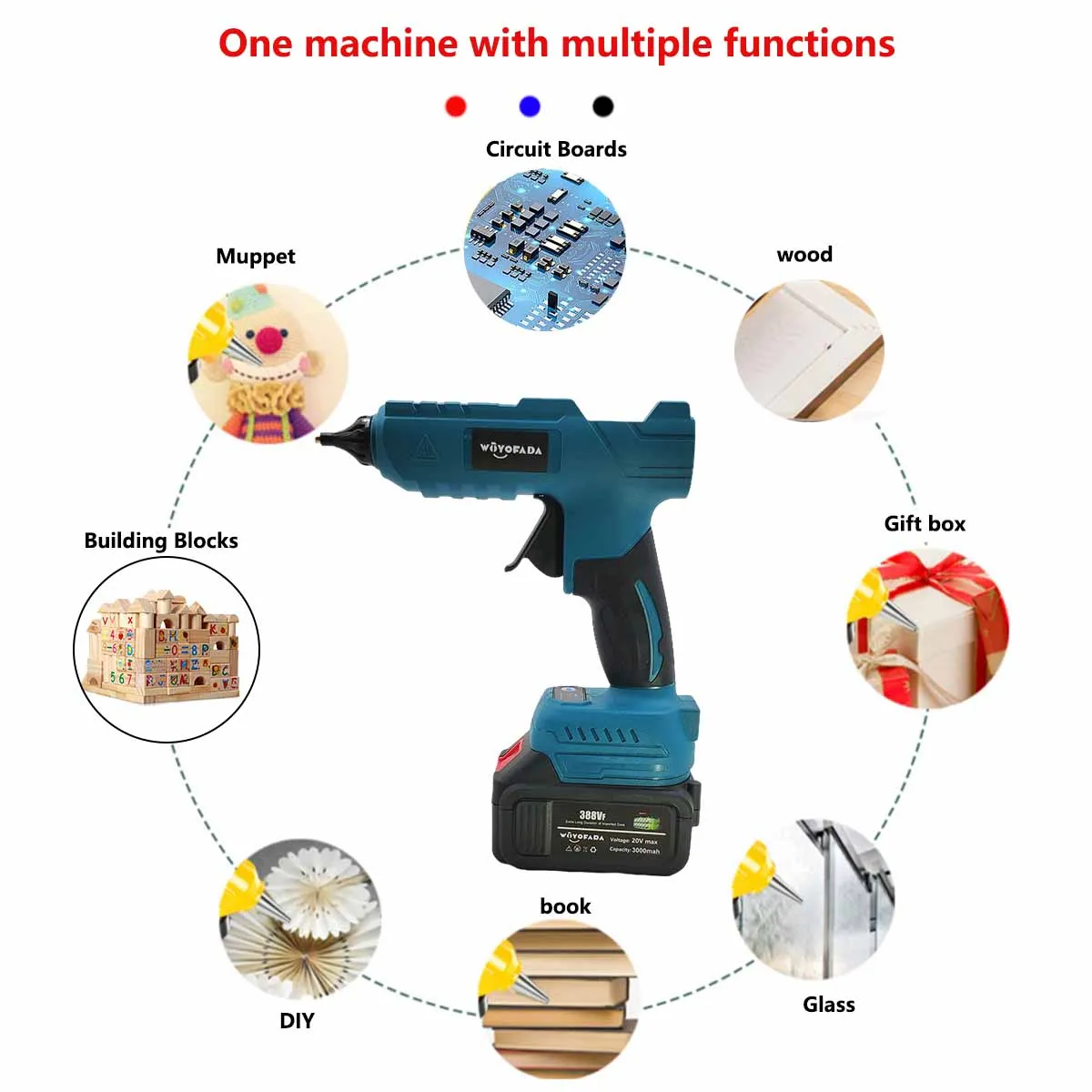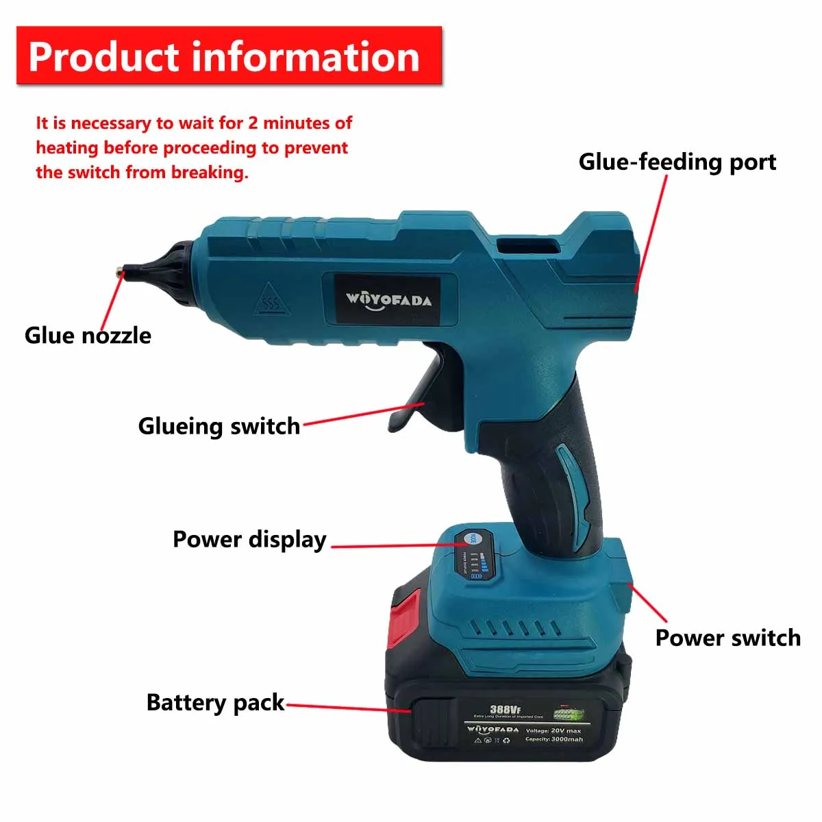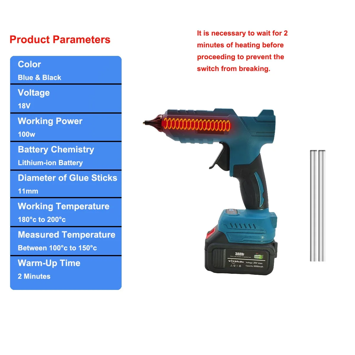 WOYOFADA Electric Hot Melt Glue Gun for Makita 18V Battery Cordless Electric Glu